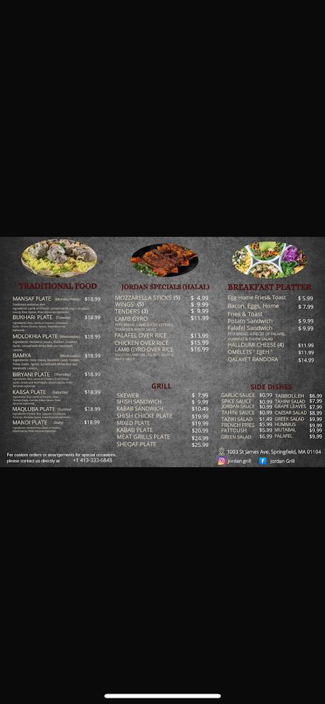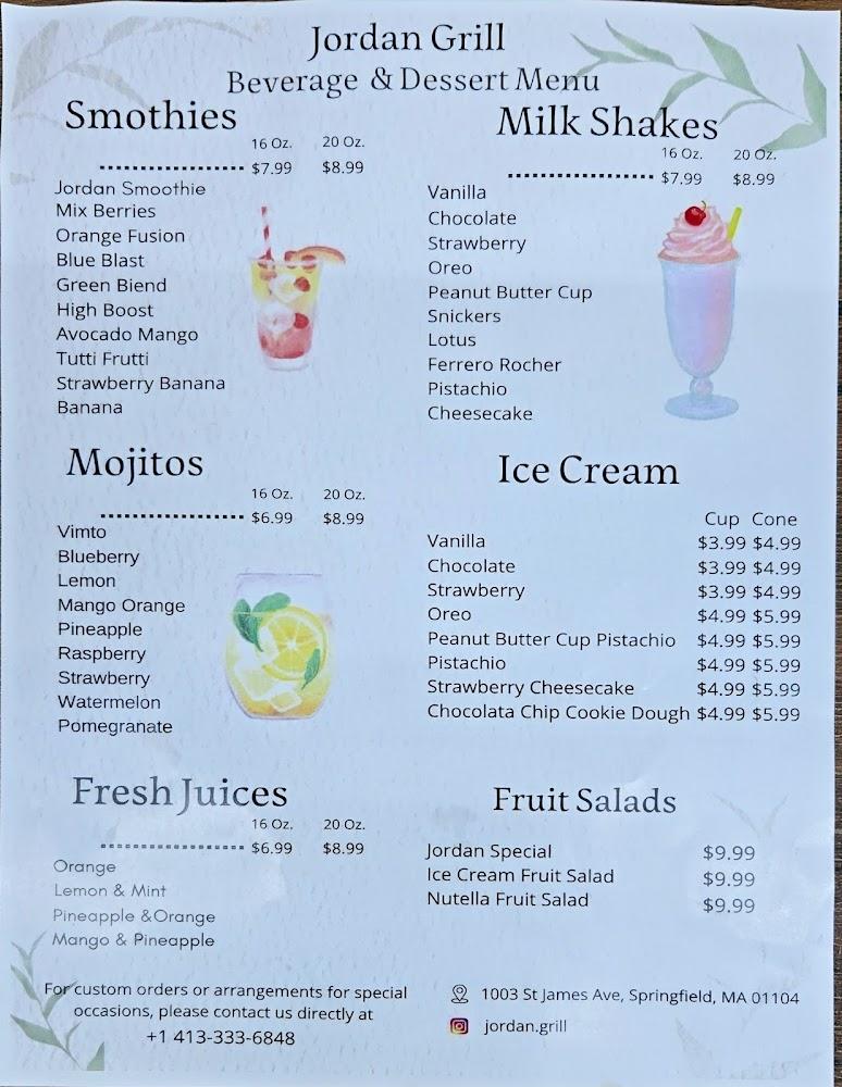 For dessert lovers, choices range from sweet, flaky baklava to creamy, fresh kunafa. The menu features a variety of beverages, including freshly squeezed juices and indulgent milkshakes. Smoothies and refreshing mojitos add to the drink selection. Jordan Grill’s culinary offerings cater to every occasion, whether family brunch, casual lunch, or cozy dinner.
